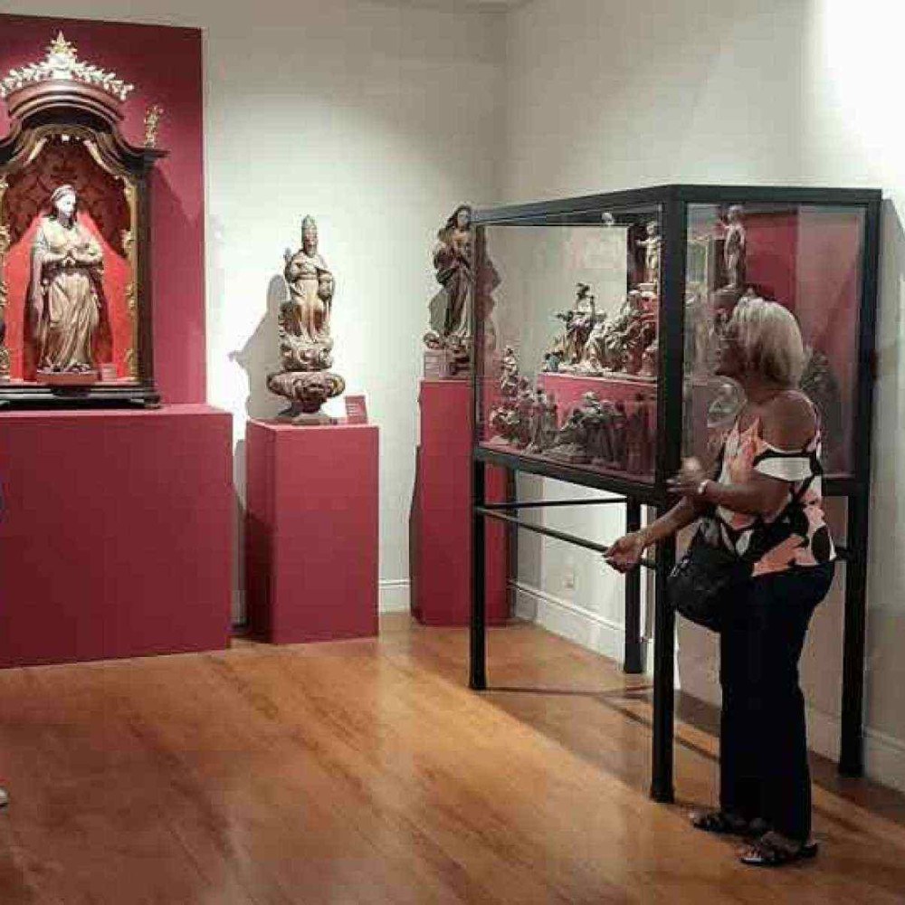 Dividida em cinco ambientes ao longo dos andares do casarão centenário, “Arte & Devoção” destaca obras de grandes mestres mineiros. Entre as peças mais impressionantes está a escultura de Nossa Senhora do Carmo, datada do século 18, que pertence a uma coleção particular em Brasília. Marcus Monteiro compartilhou que esta imagem, que possui 87 centímetros de altura, teve sua história registrada no catálogo da exposição, incluindo uma fotografia da filha de antigos proprietários segurando a estátua em sua infância.