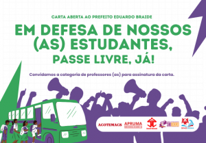 O Sindeducação chama todos os professores das redes públicas de ensino do Estado do Maranhão a se unirem na assinatura da “Carta Aberta ao Prefeito Eduardo Braide” em prol do Passe Livre Estudantil. Esse documento, que será encaminhado ao gestor municipal, é resultado de uma mobilização conjunta entre entidades sindicais e movimentos estudantis, visando assegurar que a Prefeitura de São Luís não vete a emenda que destina R$ 15 milhões para a implementação do programa.